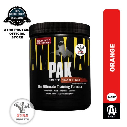 Now also available in convenient and tasty powder form. Pak's potent power can be easily stacked in the same shaker cup as your Whey, Rage XL or Juiced Aminos. The True Original now makes room for The NEW Original, Animal Pak Powder.