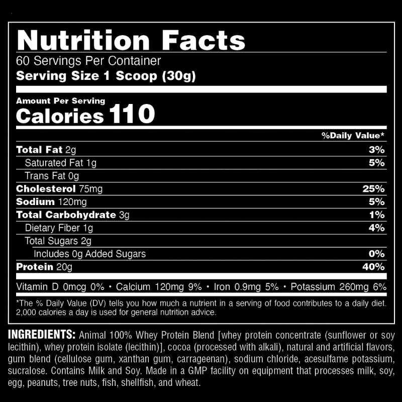 This 4lb tub contains a whopping 60 servings, ensuring an extended supply of premium protein. Whether you're a dedicated gym-goer or maintaining an active lifestyle, Animal 100% Whey Chocolate Fudge has you covered.