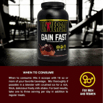 Gain Fast ™ from Universal is powerful and massive anabolic weight gaining formula. Gain Fast™ is protein-rich, complex carbohydrate-dense and packed with advanced anabolic gaining agents, all designed to help target the cellular growth areas of your body. The exclusive “Get Big Quick” Formula lets you exceed the weight gaining barriers by fueling your body with an incredible 3100+ quality calories.