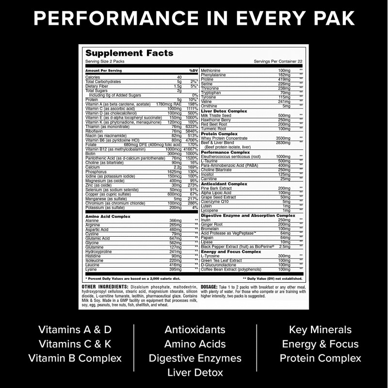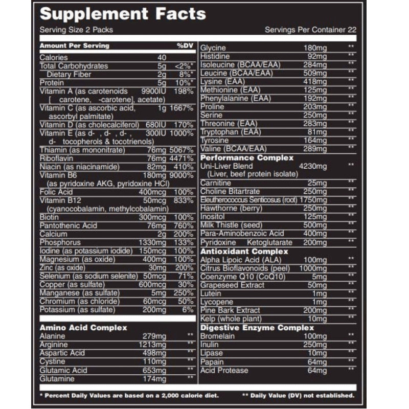 Animal Pak is specifically formulated to provide comprehensive support for athletes and individuals in intense physical training. It is packed with over 60 key ingredients, carefully selected to promote muscle growth, enhance recovery, support immune function, and improve overall well-being. From vitamins and minerals to amino acids and herbal extracts, Animal Pak has everything you need to perform at your best.