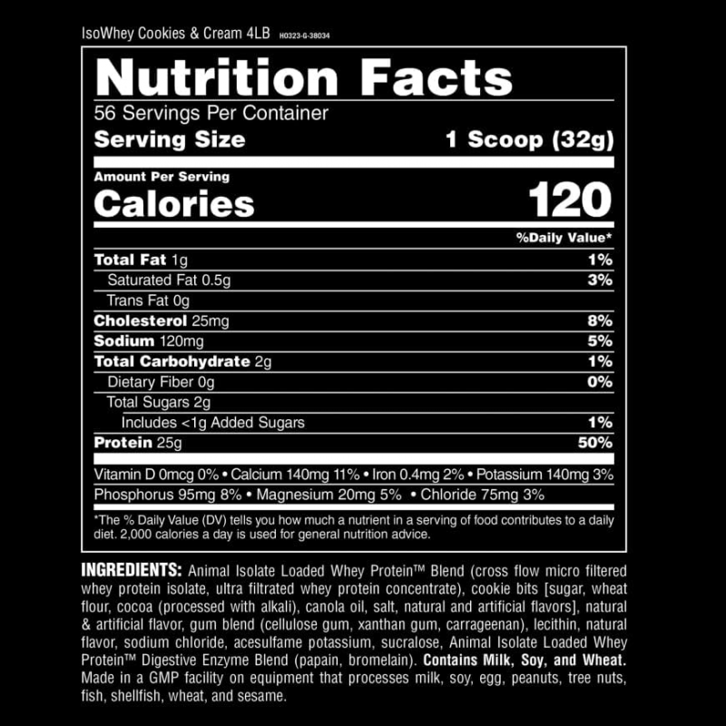 Animal Whey Isolate Cookies and Cream (4 lbs) 56 Servings