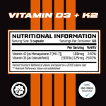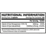Vitamin K2 is a fat-soluble vitamin that helps regulate normal blood clotting and is essential for adequately utilising calcium. Vitamin K2 also helps bind calcium to your bones’ mineral matrix. This is dosed at (180mcg).