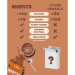 Misfits Vegan Breakfast signature cereal is loaded with a deep chocolatey flavour. It’s lovely, super crunchy and insanely chocolicious.