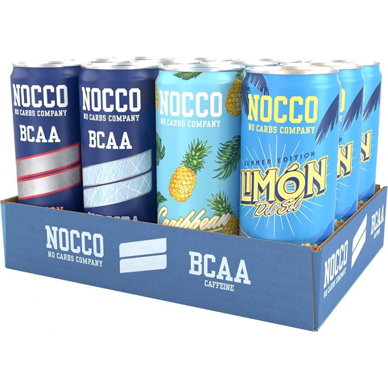 Nocco BCAA Assorted offers a refreshing and functional drink option for fitness enthusiasts and active individuals. Each 330ml can provides essential branched-chain amino acids (BCAAs), vitamins, and a caffeine boost in a delicious assortment of flavors designed to fuel workouts and aid recovery.