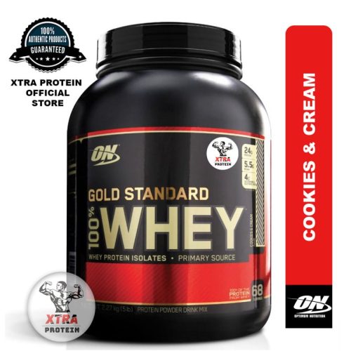 Optimum Nutrition Gold Standard Whey Cookies and Cream (5lb) 68 Servings Experience the ultimate protein supplement with Optimum Nutrition Gold Standard Whey Cookies and Cream. This 5lb container provides 68 servings of high-quality whey protein blend, delivering the essential amino acids your body needs for muscle recovery, growth, and overall fitness support.