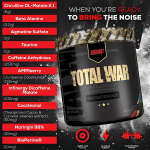 Each Redcon1 Total War Pre-Workout scoop has potent ingredients that synergistically enhance your workout experience. It contains caffeine, beta-alanine, citrulline malate, and other performance-enhancing compounds to boost intense energy, improve mental focus, and enhance endurance. This means you can power through your workouts, push past your limits, and achieve optimal results.