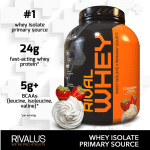 RIVALWHEY’s 100% whey protein recipe blends high-purity whey isolate (primary protein source, BTW), ultra-filtered whey concentrate, and speedy whey hydrolysate to provide an exceptional balance of clean macros, great taste, unsurpassed quality, and bang for your hard-earned buck. So good it should have been called UNRIVALED WHEY.
