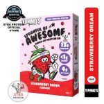 Strawberry Dream: Soy Protein Isolate, Native Tapioca Starch, Chicory Root Fibre, Sweeteners (Erythritol, Sucralose), Vegetable Oil (Coconut), Food Colouring (Sunflower Oil, Maltodextrin, Concentrate of Radish, Apple, Blackcurrant, Acidifier: Citric Acid), Natural Flavouring, Strawberry Powder, Maltodextrin, Salt, Citric Acid
